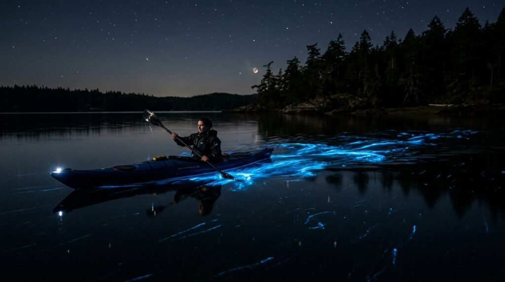 The water in Mosquito Bay emits neon blue light when it experiences any movement. The process of “bioluminescence” happens when tiny underwater organisms create shining star-like lights which transform a nighttime kayak experience into an outer space adventure.