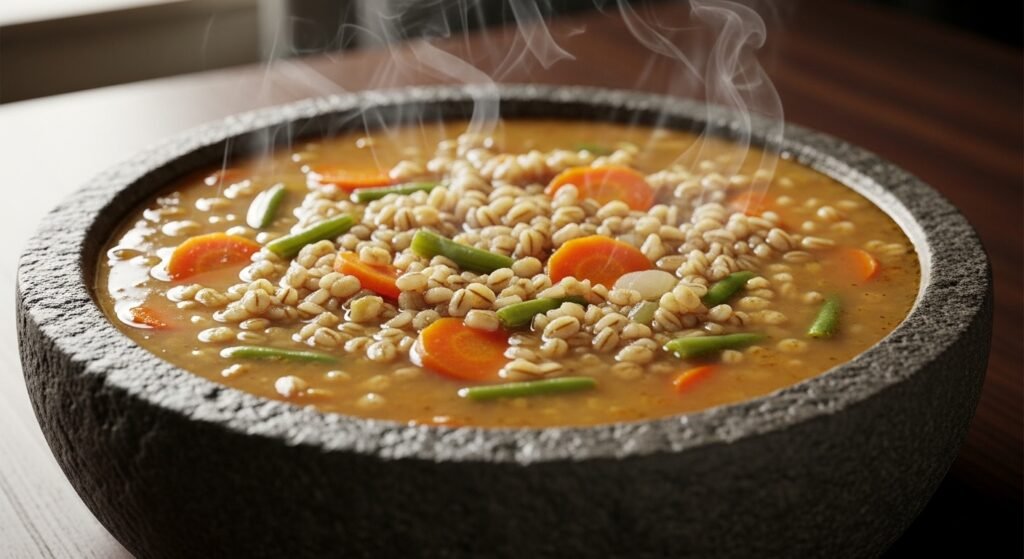 Bitter notes from barley bring depth while its fiber feeds beneficial gut bacteria. With chopped carrots and green beans mixed in, one dish grows stronger – full yet light on empty calories.