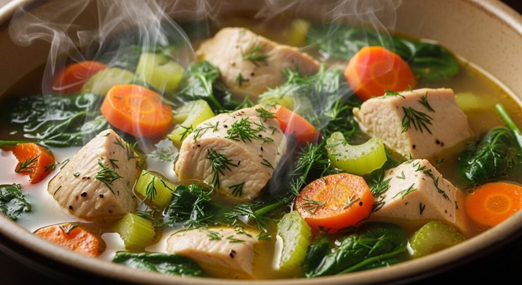 Not just any chicken soup – this one packs carrots, celery, spinach, and fresh herbs into a steaming bowl. With each bite, you get clean protein plus natural defenses that quietly work their way through the day.