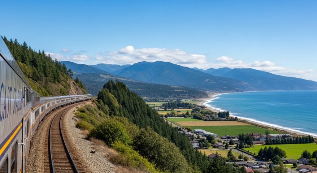 The train journey from Eugene Oregon to Vancouver British Columbia delivers an ideal experience for people who want to explore the Pacific Northwest. The train tracks run along the coastline while they also pass through areas with dense evergreen tree coverage. The path delivers outstanding Mount Rainier views which attract both nature enthusiasts and photographers to the area.