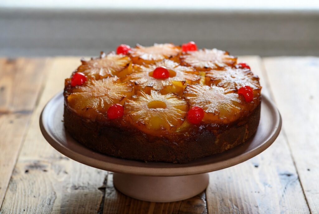 The cake became a nationwide success after canned pineapple started to become widely accessible. The classic baking technique requires cooks to caramelize fruit at the bottom of the pan which results in a special topping that becomes visible when the pan is turned upside down.