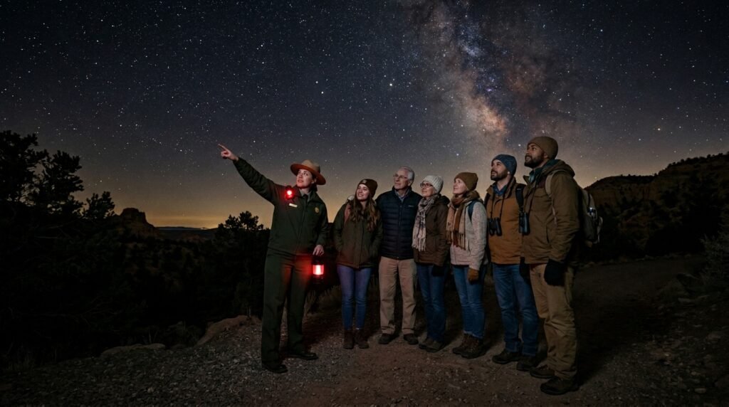 The Milky Way remains visible to American citizens from their home country without requiring international travel and the United States has designated domestic parks as “International Dark Sky Places” because they successfully achieve total light pollution management, the twelve locations provide perfect conditions for stargazing because visitors can observe celestial bodies and meteor showers without using telescopes.