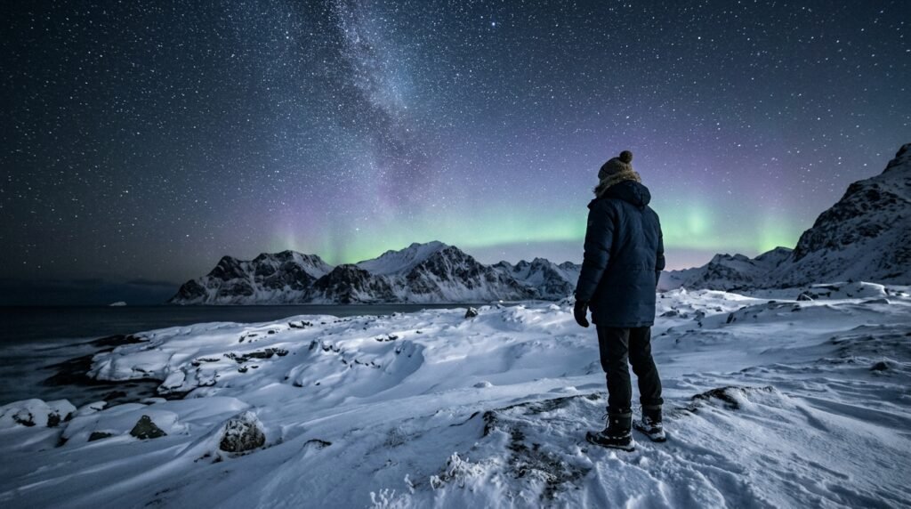 Visitors between September and March should search for two phenomena which include stars and the Aurora Borealis. The sky displays nature’s greatest performance when green and purple lights move through the air.
