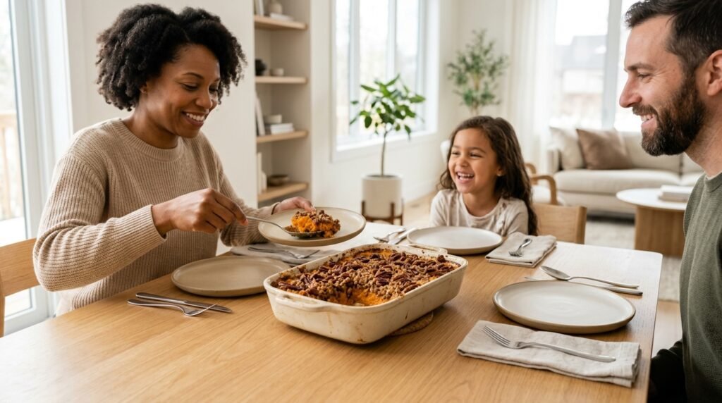 The combination of whipped sweet potatoes and crunchy pecan crumble creates a dish which exists between the two categories of side dish and dessert and the dish provides elevated holiday mash which will become the holiday standard that everybody requests.