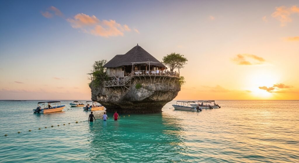 This small eatery operates from an actual rock that stands isolated in the Indian Ocean. You will walk to dinner or take a boat ride to dine on seafood while you watch the ocean’s turquoise water depending on which you choose to do at that moment.