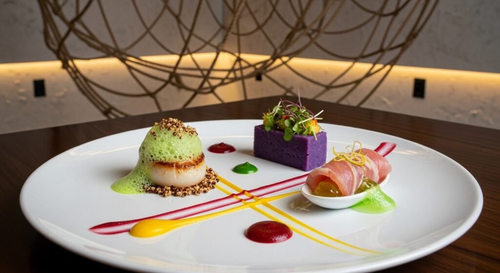 This restaurant specializes in “Nikkei” cuisine which combines Japanese cooking methods with Peruvian Amazonian fruits as its primary culinary feature and the 50-hour slow-cooked short rib dish becomes a popular menu item when served under a ceiling that displays thousands of colorful ropes.