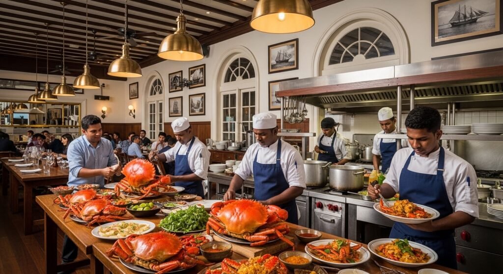 This establishment honors the giant Sri Lankan lagoon crab by operating from a 400-year-old Dutch hospital building and this restaurant which cricket players established as its foundation serves crabs that reach a weight of two kilograms.