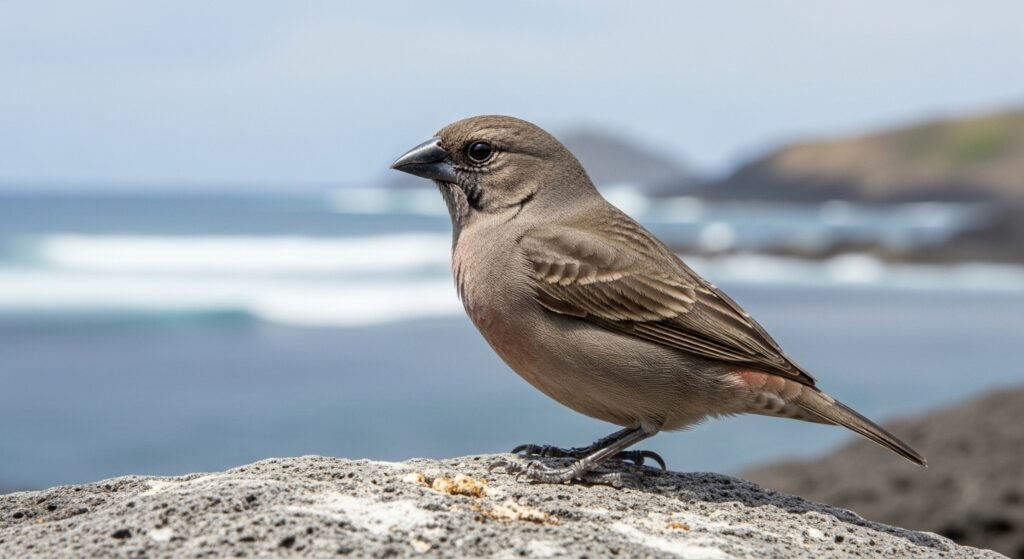 A specific finch species on the Galápagos Islands has evolved to drink blood. The birds use their beaks to create skin wounds on larger seabirds when food becomes scarce. The larger birds strangely do not fly away, allowing the finches to drink their fill in a bizarre, one-sided relationship.