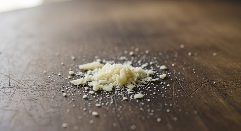 The dish needs authentic Parmesan or Pecorino cheese because 1 teaspoon gives both salt and umami flavor. In village cooking, cheese serves as a minor flavoring agent which requires minimal usage to produce strong taste results.