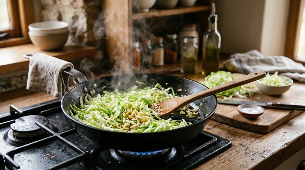For the best flavor, lightly sauté the cabbage with a little garlic or onion before layering it and the cooking process extracts all of the cabbage’s natural sweetness which results in a more delicious pie.