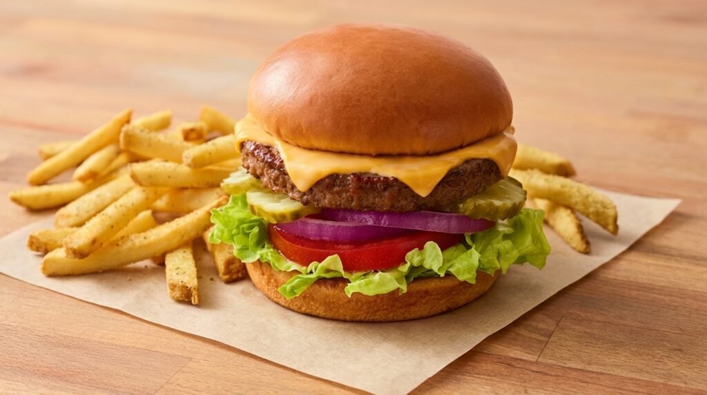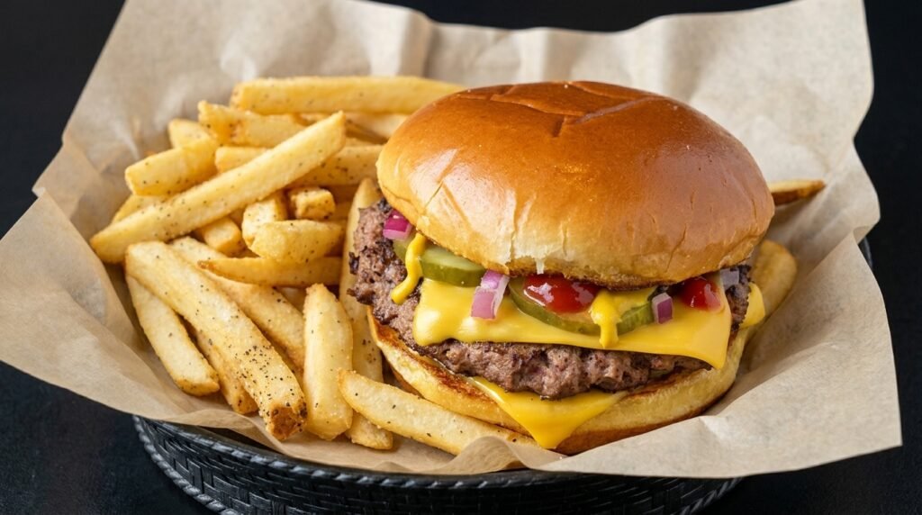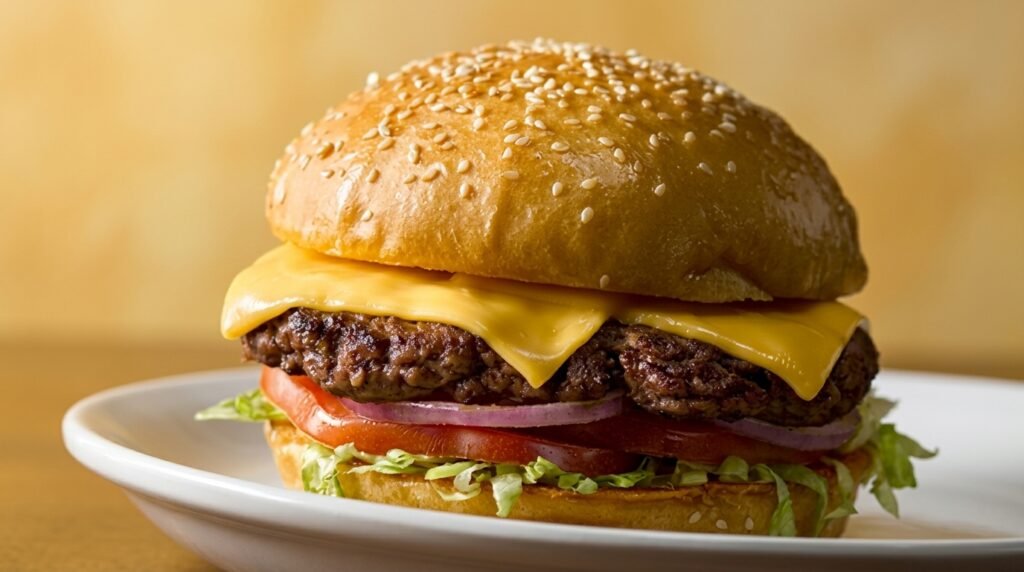 The king of the grill maintains his unchallenged status! This burger reaches perfection through its combination of massive size and tenderness and precise cooking method and the beef quality is so high it tastes like a top-tier steak on a bun. The ultimate cheeseburger experience reaches its peak through this culinary presentation.