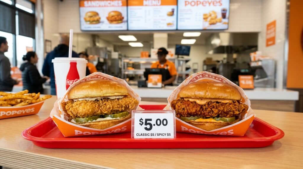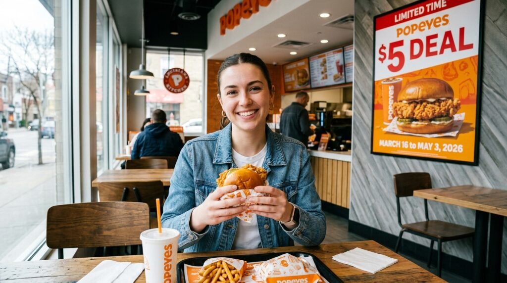 The fast-food industry received an unexpected change from Popeyes when it decided to put its Chicken Sandwich into the $5 Faves menu for a short time. The restaurant uses this promotional period to offer its most popular product at a low price which lets customers purchase a premium dining experience. The brand uses its March 16th to May 3rd, 2026 marketing campaign to demonstrate how it intends to maintain its market position during times when food prices are increasing.
