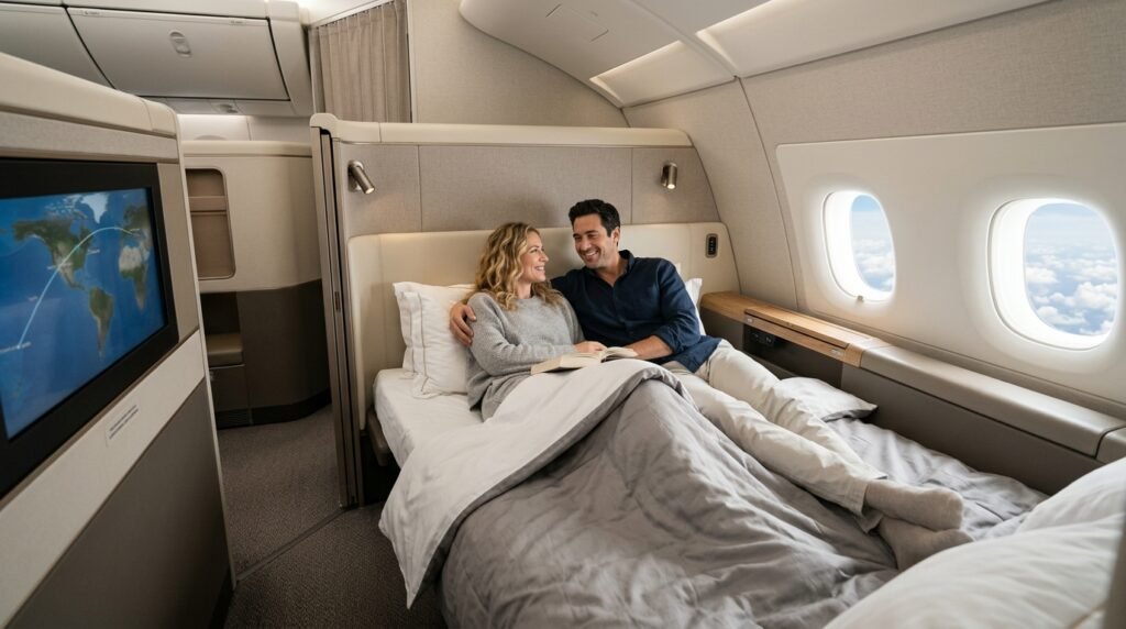 Singapore Airlines provides couples who travel together with a double bed sleeping space in their aircraft. The process requires you to use Singapore’s own KrisFlyer miles. Pro tip: search for the “Advantage” or “Saver” levels on their website at least six months in advance to find these rare spots.