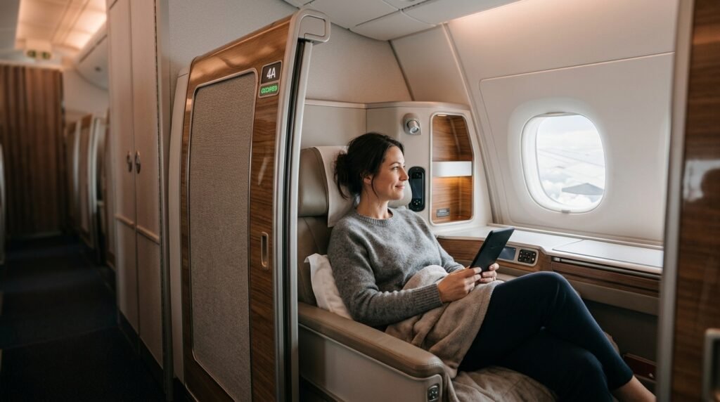 The Qsuite, which features a door that shuts completely to provide users with maximum privacy, holds the title of best business class in the world. British Airways and Qatar Avios provide you with this booking option and the “Book an Award Flight” tool on the Qatar Airways site helps you find flights that include the “Q” symbol, which indicates the presence of private suites.