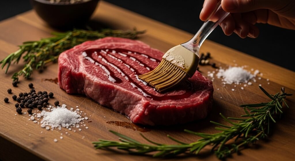 Ancient steak grillers created “instant dry-aging” through fish sauce application which they used as a thin layer on meat. The enzymes in the fermented liquid help tenderize the meat slightly while adding a crusty, savory char that salt alone can’t achieve.