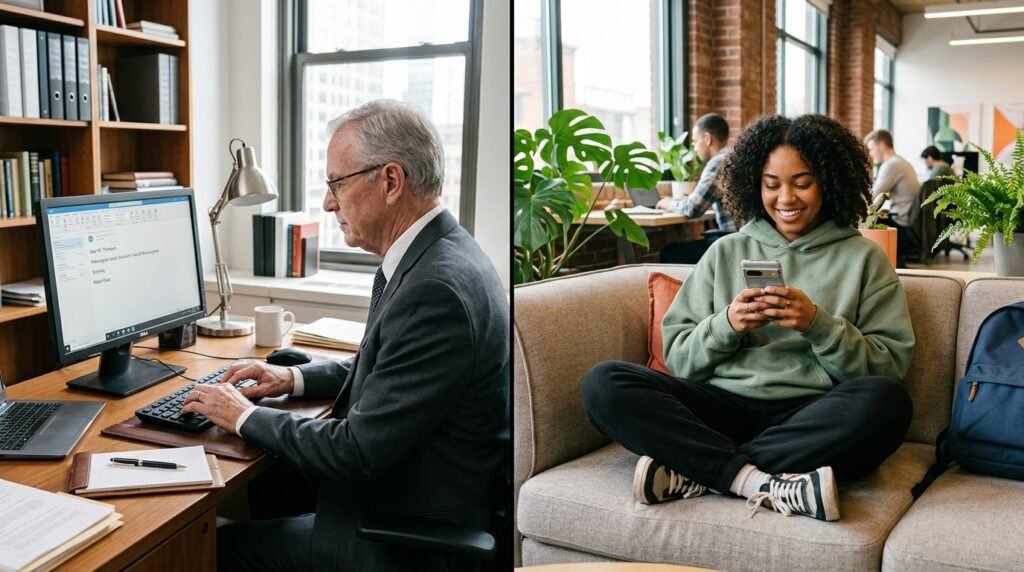 Boomers need professional “armor” which consists of suits and formal emails. The Generation Z people prefer to use emojis and casual workplace language for building human connections while establishing their authenticity through radical behavior.