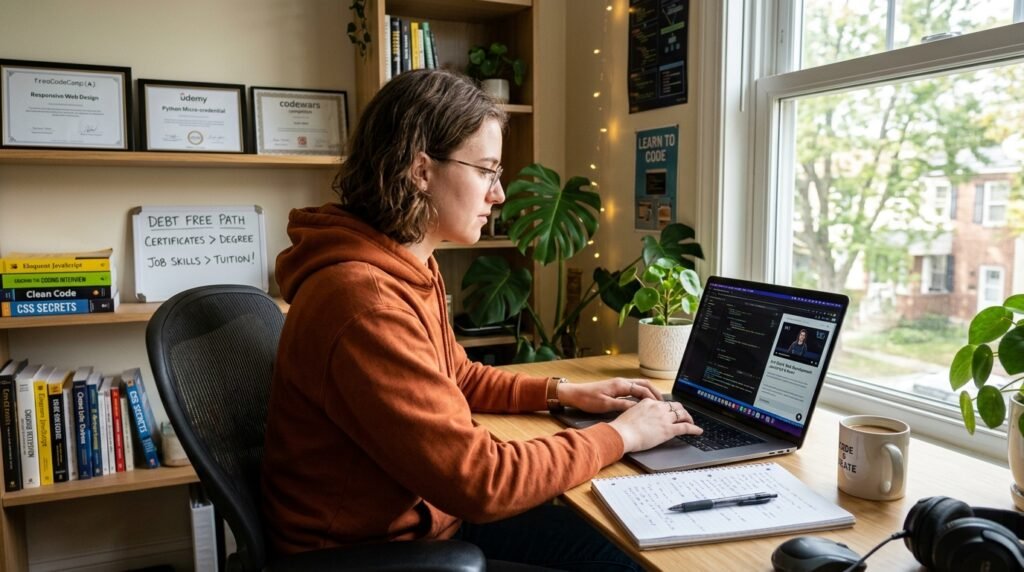 Boomers view a university degree as the only path to success. Generation Z people now choose trade schools and micro-certifications and self-study coding instead of getting a general degree which costs $100,000 because they recognize that specialized skills bring better financial returns.