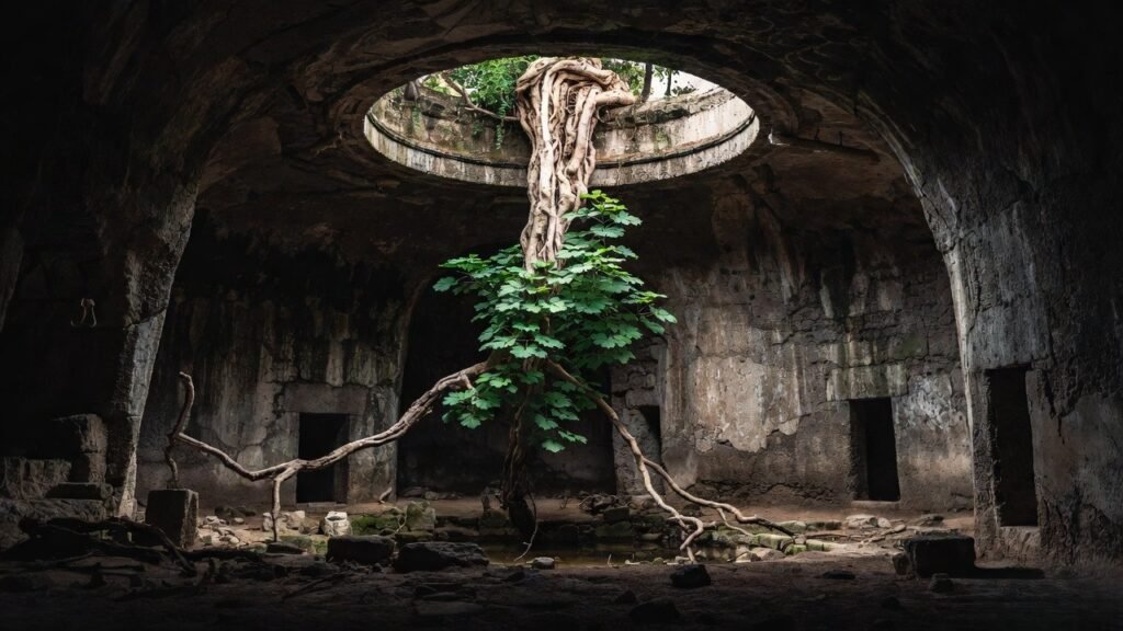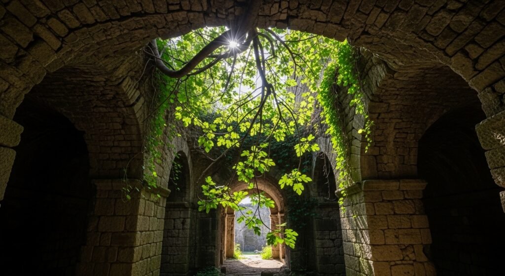 A botanical mystery exists in the ancient Roman ruins of Italy which defies natural laws. The Bacoli “Upside Down Tree” grows from an archway’s stone ceiling because its branches point downward while most trees strive to reach upward. The rare sight demonstrates that life can thrive in dark damp areas of history which should not support any growth.
