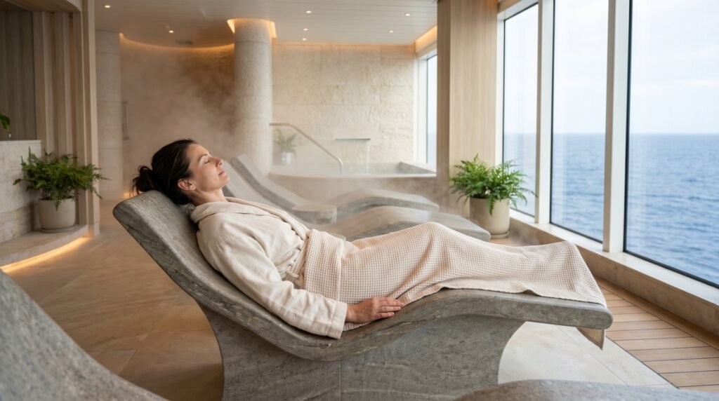The Cloud 9 Spa provides guests with a thermal suite experience which includes heated stone loungers and steam rooms for complete relaxation. The space maintains its peaceful atmosphere which prohibits children while visitors use particular passes to enter the area which serves as a site for wellness activities and stress relief exercises.