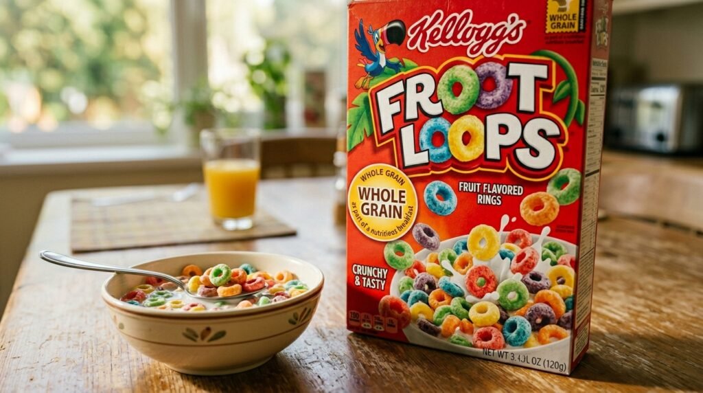Kellogg’s receives the ‘Whole Grain’ label for its sweet Froot Loops cereal products and the product contains a minor quantity of whole grain but it gets hidden under artificial colors and high-fructose corn syrup which make up most of its product composition.