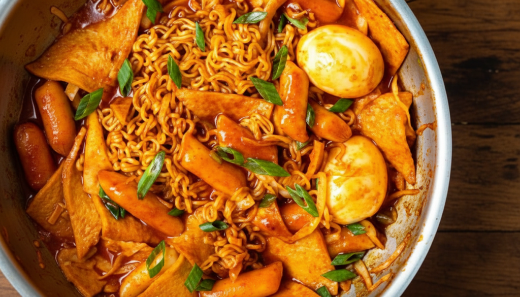The spicy-sweet red chili sauce transforms these chewy cylindrical rice cakes into a popular food item. The modern dish requires diners to try its spicy gochujang sauce which has a “Rosé” twist that uses cream and milk to create a visually appealing creamy dish for social media sharing.