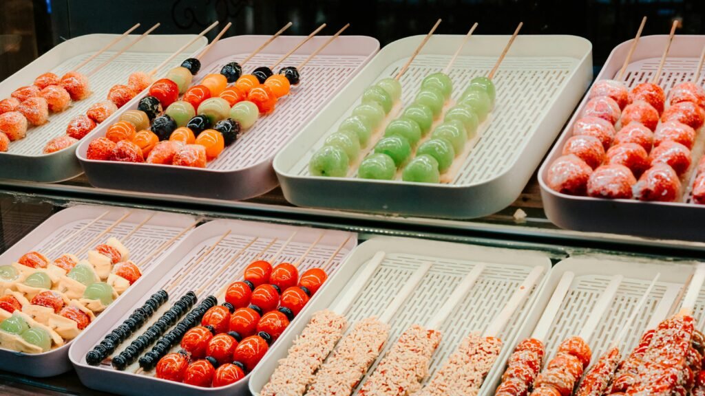 The Korean-style “Tanghulu” which originated in China has become a popular street food visual element in American cities through its skewered fruit which gets coated with a thin sugar shell. The product attracts short-form video creators because of its “ASMR” crunch sound and its gemstone-like shiny appearance.