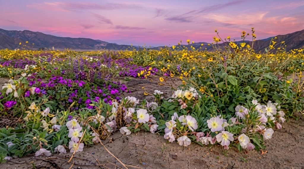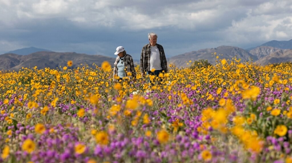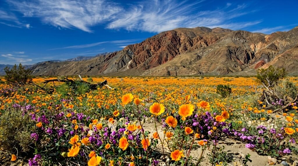 The Anza-Borrego Desert in California recently experienced a Superbloom which represents a rare and beautiful event that transforms dry cracked earth into a colorful landscape overnight. The natural phenomenon develops when winter rains meet their ideal conditions because dormant seeds emerge to create a boundless life-filled area that extends throughout the entire landscape. The world shows its continuous potential for life through all environments which exist beyond human comprehension of existence.
