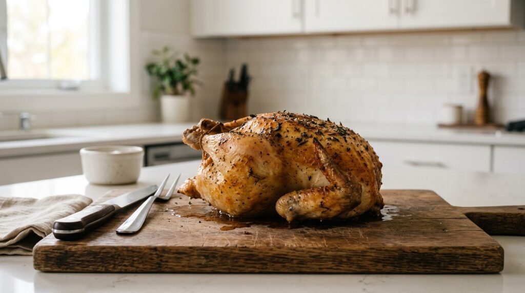 You need to take the chicken out of the pot and let it stay on the cutting board for 10 minutes and resting time enables the juices to move throughout the meat which results in every piece remaining moist.