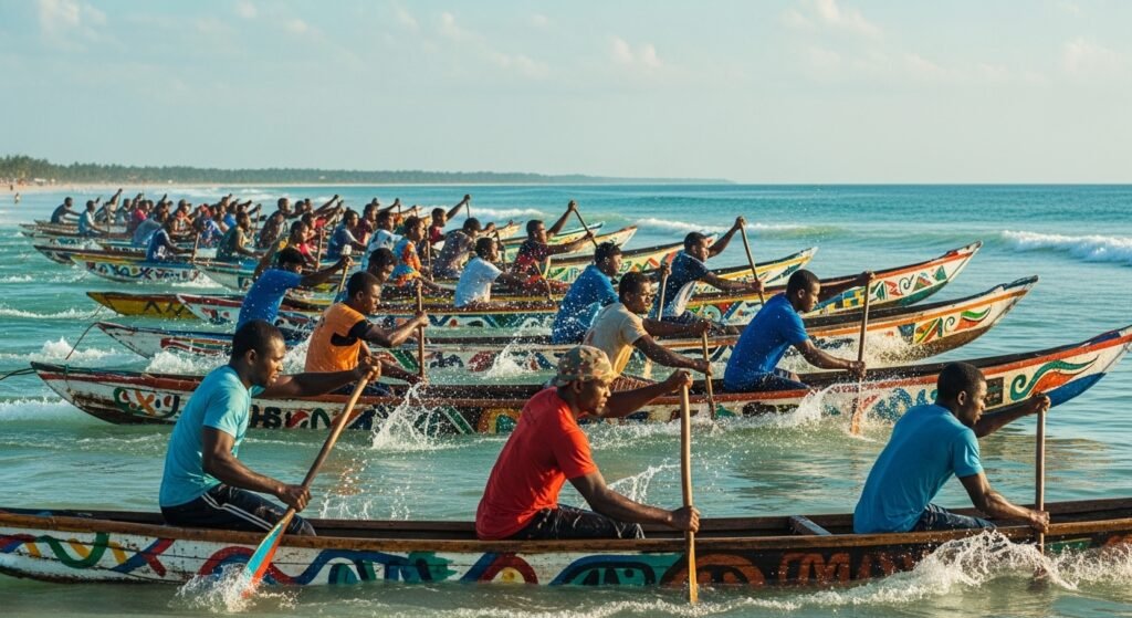 The coastal nations of Senegal use their pirogues for competitive racing, which has created a national identity. The events serve as large-scale community festivals where top fishermen from various villages compete for regional pride.