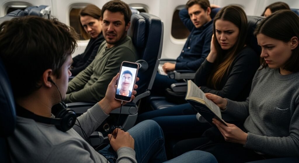 The rule specifically targets individuals who use their speakerphone to watch videos or conduct video calls, the number of real-life complaints has dramatically increased because travelers now use airplane cabins as their personal living spaces.
