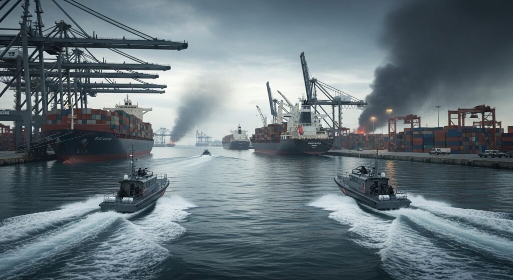 Fujairah ports have faced both fire incidents and drone threats, which targeted their logistics operations. The current situation creates extreme danger for sea travel and cruises that operate between the Gulf of Oman and Persian Gulf because of the risk that civilian vessels will be seen as military targets.