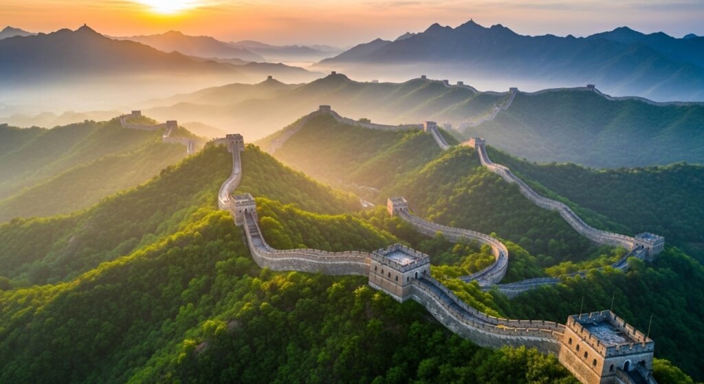 The digital experience enables users to traverse the complete length of one of the most renowned historical landmarks. The ancient site provides visitors with a view of both the detailed stonework and the extensive mountain range which surrounds it.