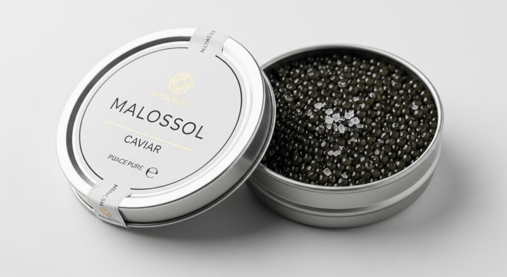 The word “Malossol” on a tin is a real-life sign of quality. The term means “little salt” in the Russian language. The fresh caviar requires minimal salt because it maintains its delicate nutty flavor through minimal salt usage.