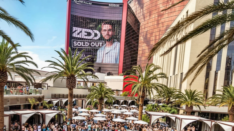 The quiet hotel pool is a rare find. Most Strip pools have transformed into “Dayclubs” with world-famous DJs and cabanas. The pool area has evolved from a place for brief swims to becoming an extensive outdoor concert venue.