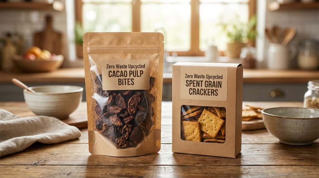Food companies have discovered how to transform “waste” materials into valuable products. The process of turning cacao fruit pulp into snacks creates an example of a product made from a material which normally gets discarded, while spent grain from beer brewing becomes crackers.