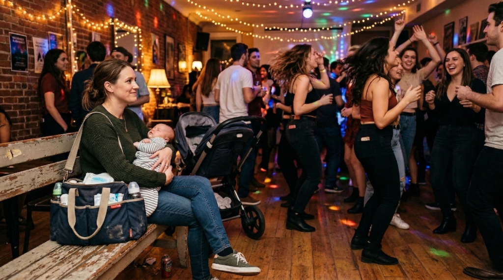 A person who recently became a parent might feel out of place at a party full of single, late-night revelers and the places you used to feel comfortable will become unfamiliar to you because your priorities have changed.