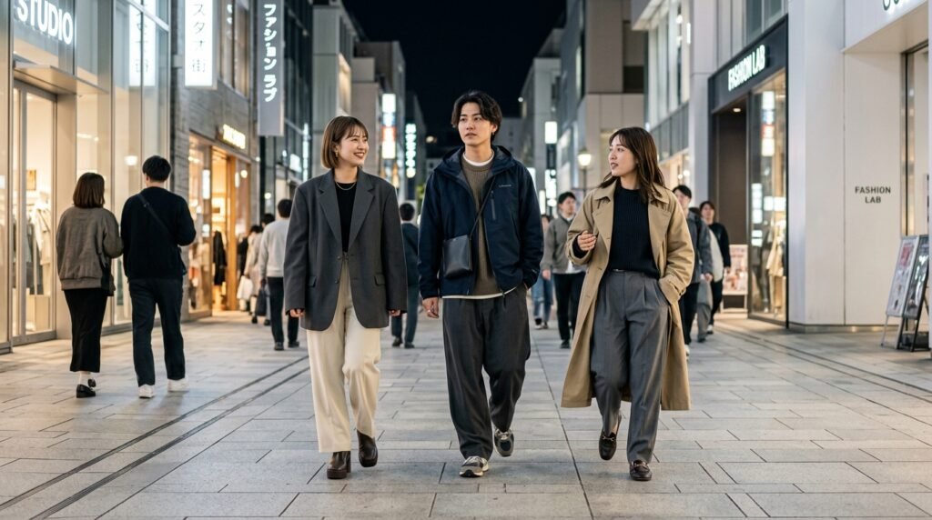 After work ends, Harajuku and Ginza streets become busy with people who want to display their fashion choices. The evening runway shows creative outfits which combine traditional kimonos with modern tech-wear to display the city’s artistic character.