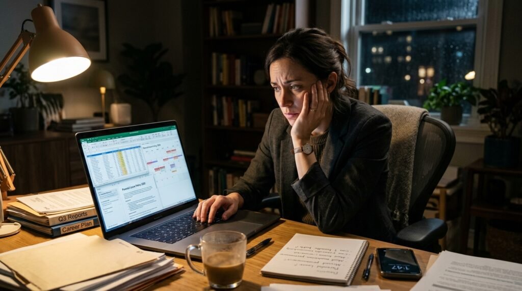 The current job market demands employees to work extended hours while they switch jobs frequently. Employees at the company fear that taking parental leave will result in them missing out on future promotional opportunities which will create challenges when they attempt to raise children in a stable environment with job security.