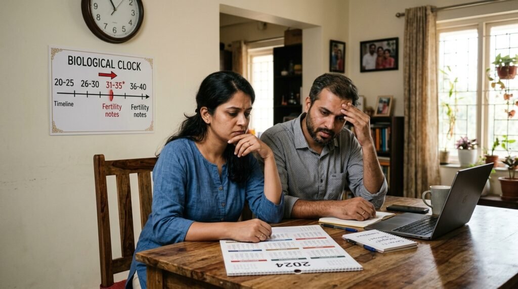 The “biological window” for having kids has become shorter because people now wait until later in life to finish school and get married. People face greater decision-making pressure because their upcoming deadline causes them more stress than what people experienced in earlier generations